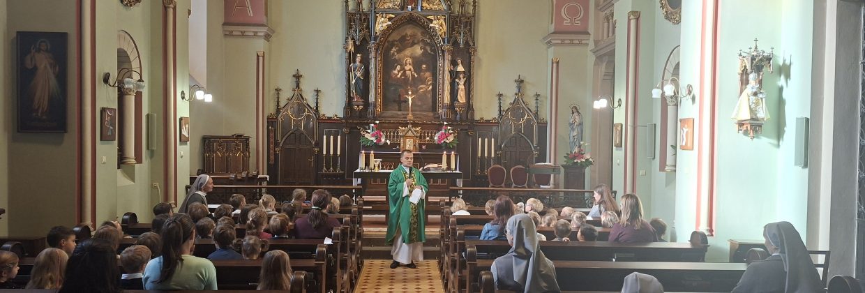 W czwartek 23.10.25 r. modliliśmy się wspólnie na Mszy Świętej o Boże błogosławieństwo dla społeczności Przedszkola i Sióstr Urszulanek przez wstawiennictwo św. Urszuli. Dziękujemy Siostrom i kilku Rodzicom za wspólną modlitwę, Siostrze Dyrektor za liturgię Słowa i śpiew psalmu responsoryjnego, a Bogusi, Jasiowi i Ricie za ilustrację ruchową do śpiewanych piosenek.