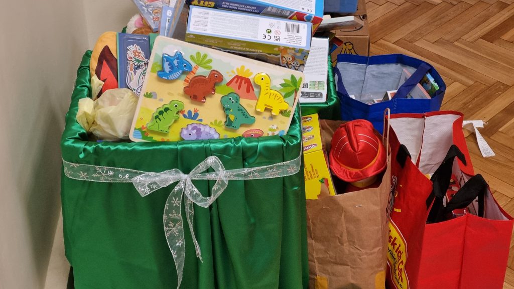 W tygodniu (01.12.2025 r. – 05.12.2025 r.) poprzedzającym wizytę św. biskupa Mikołaja, w Przedszkolu w ramach urszulańskiego Serviam („służę”) została zorganizowana mikołajkowa akcja charytatywna zbiórki zabawek, słodyczy, książek i materiałów plastycznych dla Dzieci z Rodzin w trudnej sytuacji życiowej z Parafii w Kosarzyskach, w której posługują Siostry ze Zgromadzenia Sióstr Urszulanek UR. Bardzo radosny tydzień oczekiwania na spotkanie ze św. Mikołajem był okazją do podzielenia się dobrem z potrzebującymi i tym samych czynnego naśladowania postawy świętego, pięknie wpisującej się w ideę urszulańskiego Serviam. Dzięki otwartości serc, ofiarności i hojności Rodziców i Dzieci udało się zebrać dary, które zostaną przekazane Siostrom ze wspólnoty w Kosarzyskach, a docelowo trafią w Święta Bożego Narodzenia do Dzieci z potrzebujących Rodzin. Ogromnie dziękujemy wszystkim darczyńcom i ufamy, że św. biskup Mikołaj będzie ich szczególnie wspierał swoim wstawiennictwem u Bożego Tronu w świątecznym czasie.