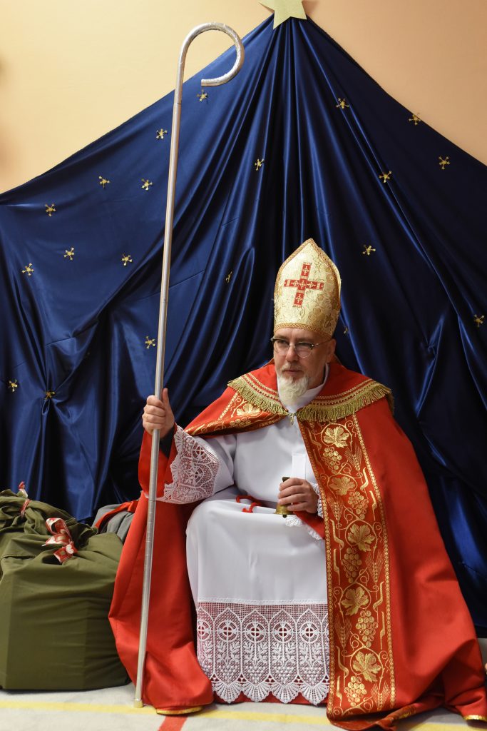 W przeddzień liturgicznego wspomnienia św. biskupa Mikołaja w piątek, 05.12.2025 r. w Przedszkolu pojawił się długo wyczekiwany przez Dzieci gość z Nieba, święty Mikołaj we własnej postaci. Śpiew piosenek, recytacja wierszy, możliwość rozmowy, pamiątkowe zdjęcia i oczywiście podarunki, z których słynie św. Mikołaj sprawiły, że ten szczególny czas spotkania ze świętym biskupem dostarczył Przedszkolakom wiele pozytywnych przeżyć i emocji, które na lata zapiszą się w dziecięcych wspomnieniach. Dzieci w każdej grupie także przygotowały Świętemu niespodzianki, oczywiście imieninowe – własnoręcznie pieczone pierniczki oraz laurki.